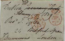In 1832 a new type was introduced consisting of a two-ring date stamp with date symbols in the centre, FREE and DUBLIN in the outer band separated by two stars. This type is listed by Lovegrove as being in use from 1832-1835. |
