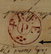In 1832, a mark was introduced for use on letters received on Sunday and posted on Sunday at the Chief and Branch Offices, consisting of a circle surrounded by arcs or scollops. There are many varieties of this mark, differing in size and the number of arcs. The use of these marks continued into the 1860's. |