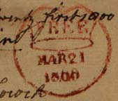 This piece franked by "Will" and dated May eighteen 1834 in manuscript, has the "SUNDAY" mark dated May 18 and with the curved figures in the year. The inner circle is 21mm, and it has 22 arcs around it. The single rim, crowned circle Free mark was applied on May 19th 1834. |
