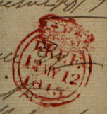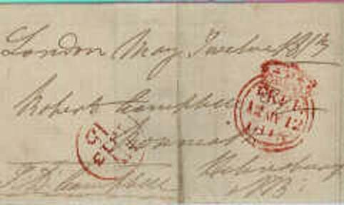 This wrapper is dated in manuscript "London May twelve 1813" The double ring shows that this was an evening duty mark, morning duty had a single ring. |
