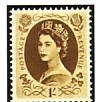 The first definitive series of the reign of Queen Elizabeth II was issued in 1952/54 with values from ½d to 1/6 and Edmund Dulac designed the 1/-, 1/3d and 1/6d values, (issued in 1953) (Fig. 8)