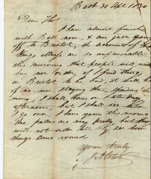 And that is the last of Anthony Knight — travelling salesman — or so it would appear, because the next letter is dated April 29th, 1830 and addressed to Mr T.S. Alston 97, Watling St, London, but is signed . . .