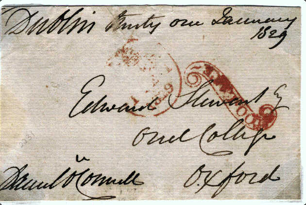 One of the rules governing the use of the Free Frank privilege was that the place of posting, and the date of the letter had to be written in full at the top of the address panel. Here it is Dublin, thirty one January, 1829, but the FREE datestamp is the next day, 1st February, 1829. So to explain the difference, the post office stamped it with the 'Too Late' mark.