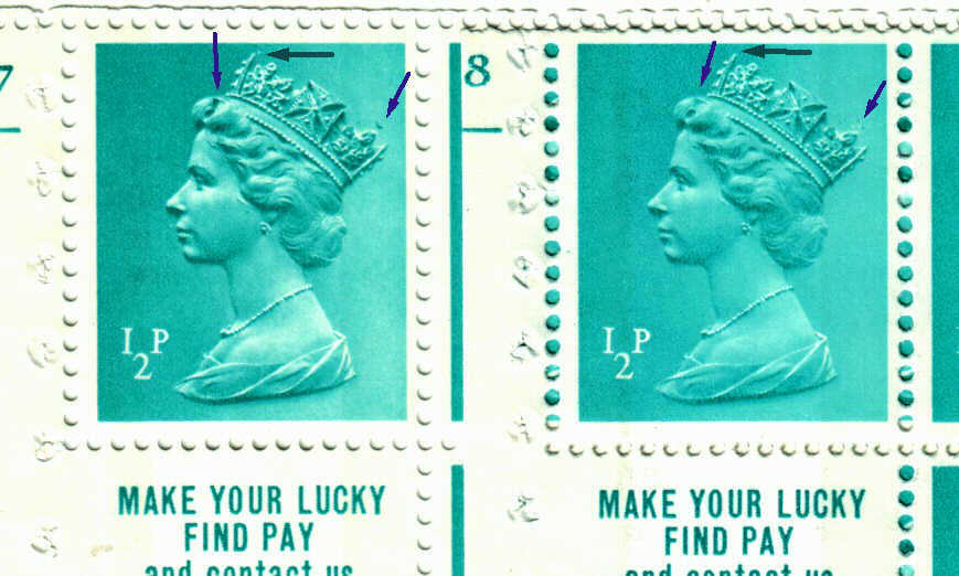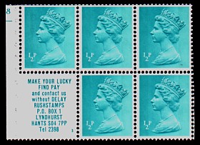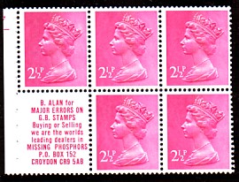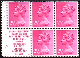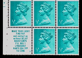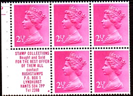 2½p UB32 cylinder B19, with 'Stamp collections - Rushstamps' advert. is also listed with APL and APPL perforation types. APL and APPL perforations as illustrated in the ½p panes.
