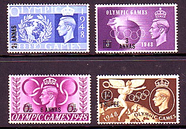 The KGVI stamps issued with the sterling values cancelled and overprinted with Indian currency included