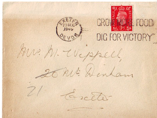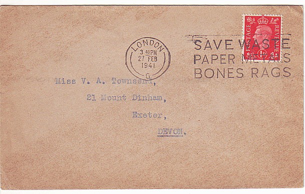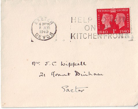 Machine Postmarks with Slogans The first of this type of machine cancelled date stamp with a slogan was issued in 1917 to encourage the purchase of war bonds, and by 1999 nearly 7000 had been used. I have included these covers because they are such a reminder of history, when it was so important to get a message across to the population during the second World War. Introduction definitive stamps Definitive stamps inverted watermarks High Value stamps Coil stamps and leaders Sheet markings Stamps in booklets Forces Mail Airletters Commemorative issues Overprints Wartime slogans |