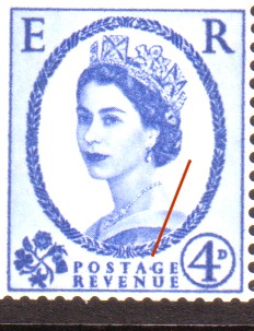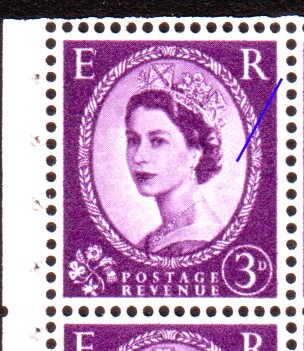 Missing marginal arrow, which should be where the blue line is marked on the image. The SG Specialist catalogue volume 3 notes that on :-