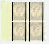 Phosphor lined stamps were issued from June 22, 1960. These phosphor issues are a study on their own, as three different types were used, emitting green, blue or violet phosphorescence. They cannot be demonstrated on an album page without the use of an ultraviolet lamp, as this is the only way to distinguish the colours accurately. However the bands can be seen on this cylinder block, as strips down the centre of the stamps, continuing on into the bottom sheet margin.