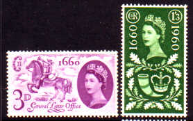 7 July 1960 Tercentenary of Establishment of the “General Letter Office”. Designers: Reynolds Stone (3d)[143,390,260] Faith Jaques (1s 3d)[6,090,840]. Wmk Multiple crowns