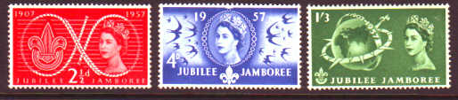 1 August 1957 World Scout Jamboree wmk St. Edwards Crown with ER. [Nr. printed]