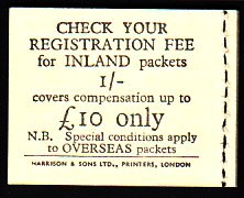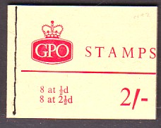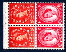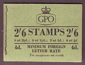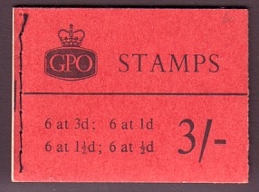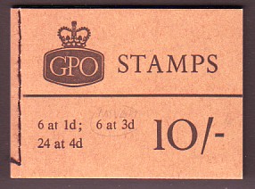 The value of the booklets issued during the Wilding period varied from this type of 1/- in a small plain cover with 12 panes of 2 stamps : 4 x 1½d 4 x 1d and 4 x ½d, to a 10/- value containing 6 at 1d, 6 at 3d and 24 at 4d stamps in panes of 6 with or without adverts.