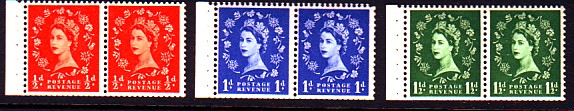 The other values were of 2/-, 2/6d, 3/-, 3/9d, 4/6d, 5/-, 6/-. Each of the different value booklet had a different coloured cover.There are some values in booklets which have all the different watermarks issued during this period, and others with graphite lines and with phosphor lines applied.