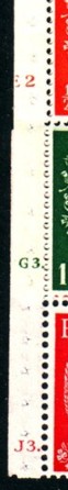 Booklet panes of 6 printed from 20-row cylinders always had the cylinder number adjoining the bottom row of stamps but in the case of 21-row cylinders, the perforated web is cut at every 20th row, to make sheets of 480. Consequently, on successive sheets a cylinder number appears one row lower and thus a pane can have it adjoining the top or bottom row.