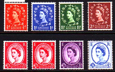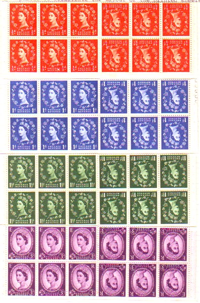 I have made up this illustration from booklet panes as it is more colourful. These panes on the right do actually have the watermark inverted, although it cannot be seen from the front of the stamps. All these panes came from booklets.