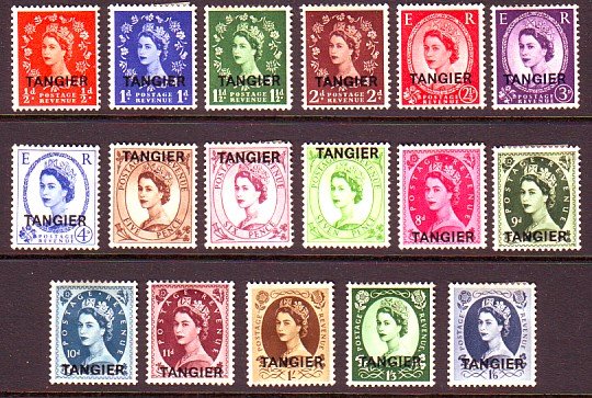 Tangier was part of the International Zone of the Morocco Agencies, and the British stamps were overprinted for use in those Agencies. This set was issued between 1952 and 1954 and was on paper with the Tudor crown watermark.