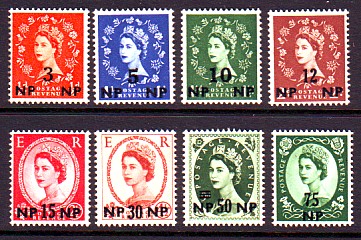 We were unaware of these overprints until a visitor to our website asked if we knew anything about Wilding stamps overprinted with NP. We knew about the Morocco Agencies and Tangier, through our collection of George Vi stamps, so we checked in the catalogues and discovered the following information.