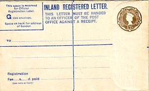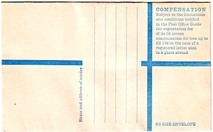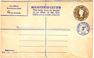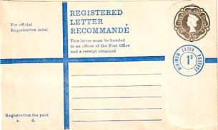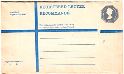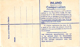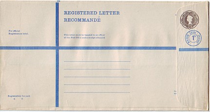 July 1963. 1/9d gray plus blue circle "Minimum Registration 3d extra". 1/9 rate on back as minimum fee.