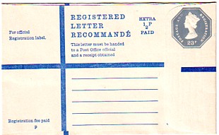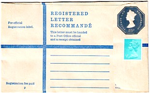 As above but upgraded with ½p Machin (23½p rate came into force in 1973.)