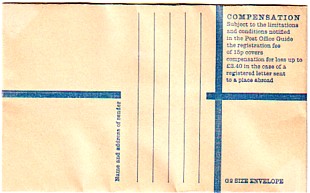 June-July 1974. 23p Slate-Grey embossed plus blue "EXTRA 6½p PAID". No compensation schedule on back, blue lining inside, pink tinged paper.