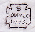 | Type 1. Standard Series. In use from January 1830 to 1834 This cover dated May 12th but with an illegible year was the basic type and had a frame size of 20 x 21 and moveable characters. It was struck in blue ink from Jan 1830 but it is not specified when red ink came into use. |