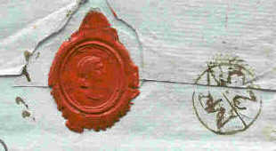 | On the enlarged view, it shows the seal which was used to close the letter, it is a woman's head. This type of Bishop Mark was in use from 1760 to 1797, always applied in black ink. This letter was delivered to Sir Richard Heron in Grosvenor Square, London. |
