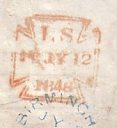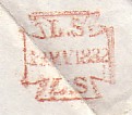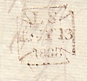 This letter bears a Type 4a design mark in use September 1842 to December 1849. The frame was 24.5 x 24.5. The characters were moveable and it was struck in red ink.