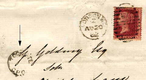 Dear sir, At first glance this next example would seem lacking in information, there is no town or date, either in the too late stamp or in the obliterator.